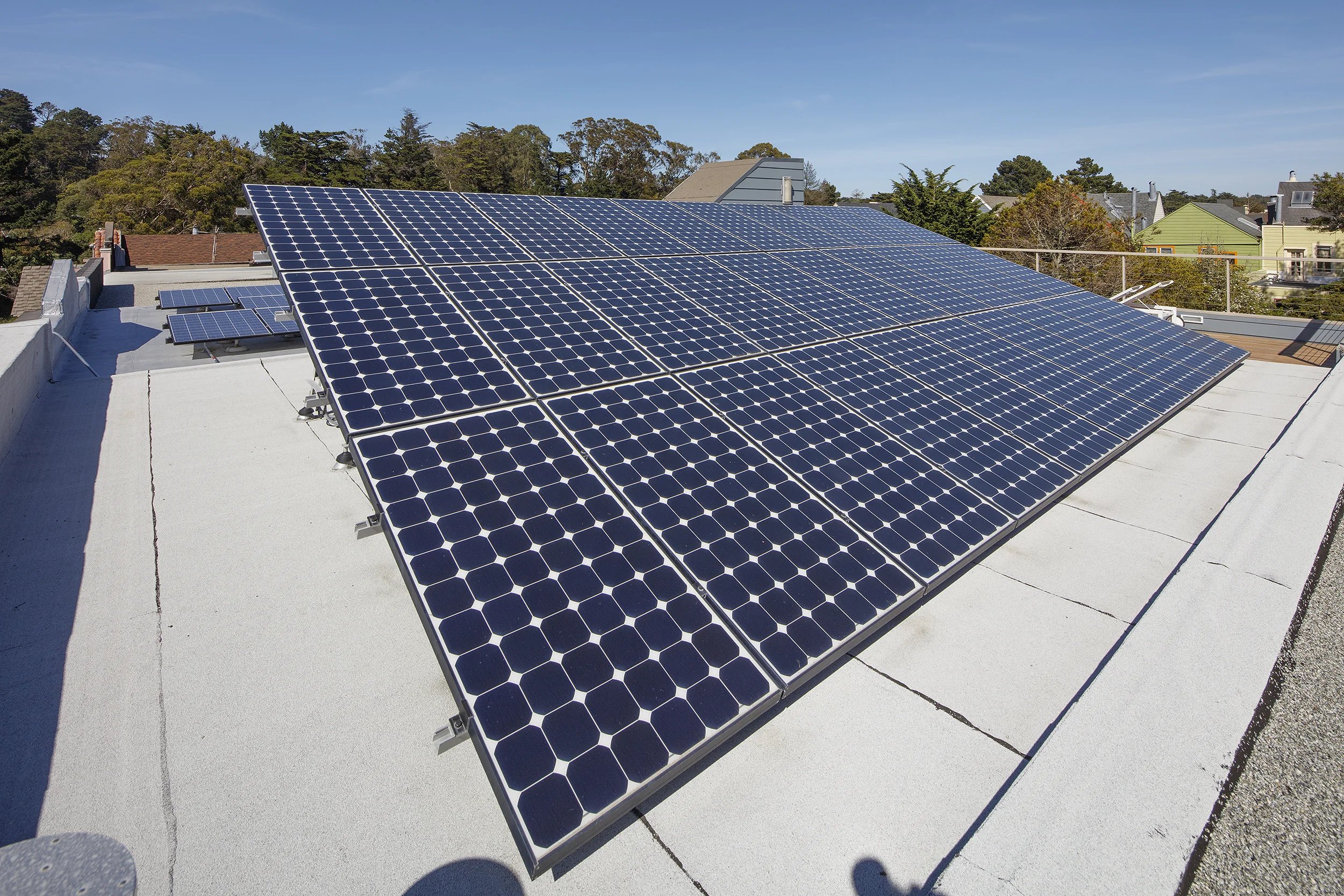 Includes images of backyard, patios, balcony, and roof solar panels, as well as architectural details.